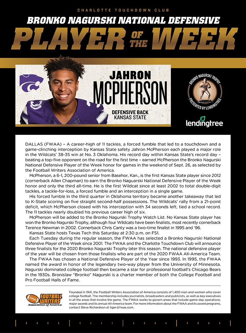 Bronko Nagurski Players of the Week
