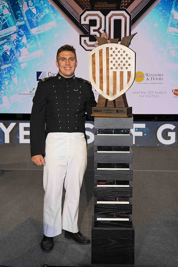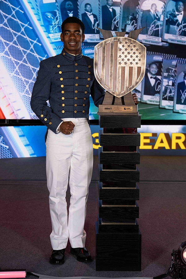 The purpose of the Defender of the Nation Award is to honor a defensive football player from one of the Nation’s Service Academies and Senior Military Colleges as well as top ROTC programs including: Air Force Academy, Appalachian State University, Auburn University, The Citadel, Coast Guard Academy, Michigan State, University of Mississippi, Naval Academy, Norwich University, University of South Carolina, Texas A&M University, Villanova University, Virginia Tech, VMI, and West Point. The recipient is selected based on academic, athletic and community achievements, but most importantly on exceptional leadership qualities on the football field, in the classroom and in the community. The recipient must exhibit a high standard of integrity by leading through example.